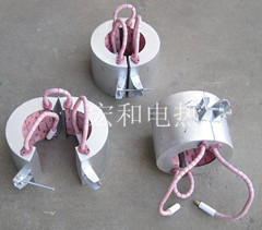 以履帶式加熱器作熱源,配以保溫材料以及外殼,做成圈型對開式加熱器,便于裝卸,適用于中小型管道的局部加熱,額定工作溫度 750 ℃。